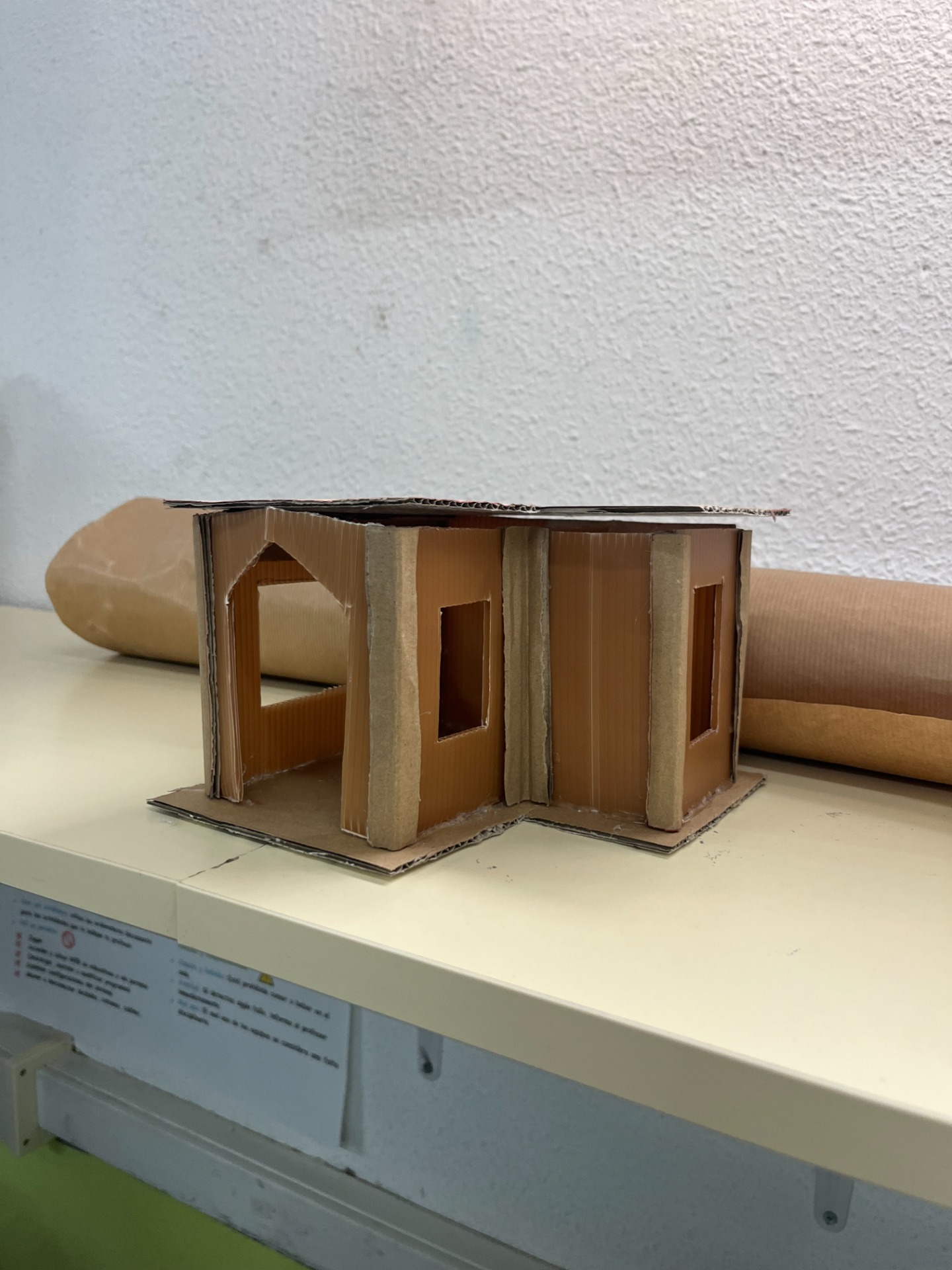 Estos dos días que no ha podido venir Lucía porque estaba mala, hemos terminado la parte de la casa de la maqueta, donde irá la placa de Arduino y el protoboard (el techo se abre para poder colocar bien las cosas), solo nos falta pintarla.