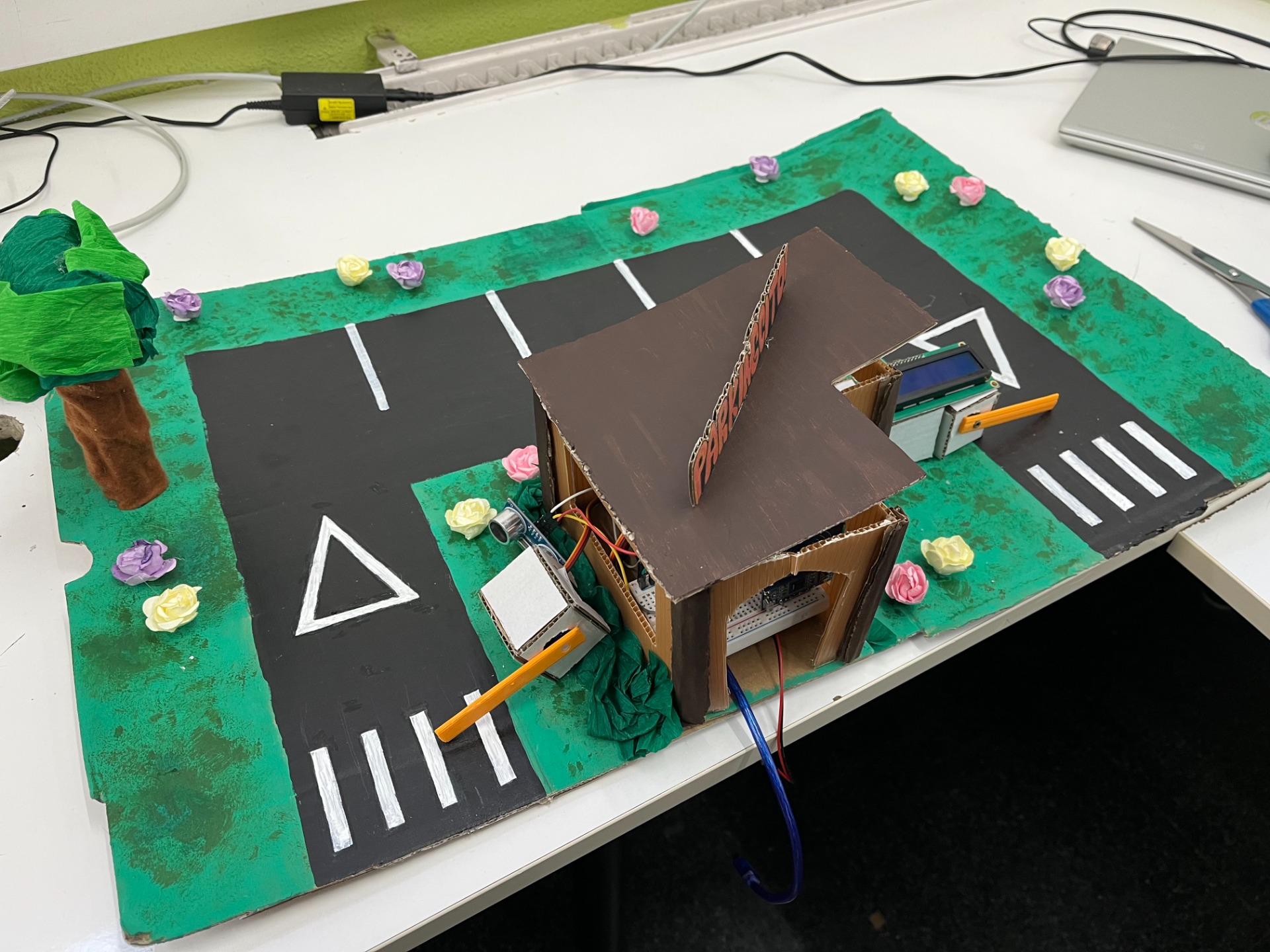 ¡Hoy ha sido el último día de proyecto! Ayer tuvimos complicaciones con el código, ya que no nos funciona el RFID, pero lo hemos conseguido solucionar. Además, hemos terminado la memoria del proyecto y pegado todo lo que faltaba de la maqueta, unos pocos árboles, arbustos y las vallas.